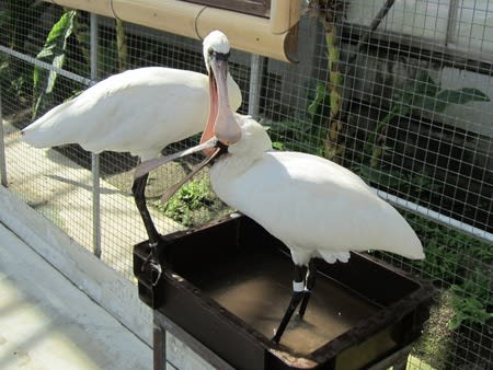 ⑪一方のクロツラヘラサギが。。。もう一方の頭にかみついているような(笑)