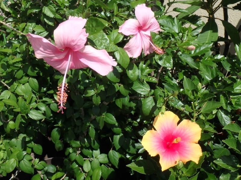 ピンクのハイビスカスと、ミセスユミ。