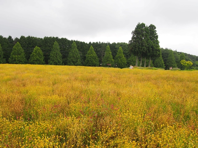 カモミール畑です。すっかり、花びらが落ちて、中心の黄色いところが残っているのでこういう光景に。