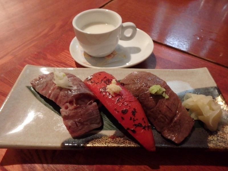 これも牛さんの握りずし。奥はヴィシソワーズ。