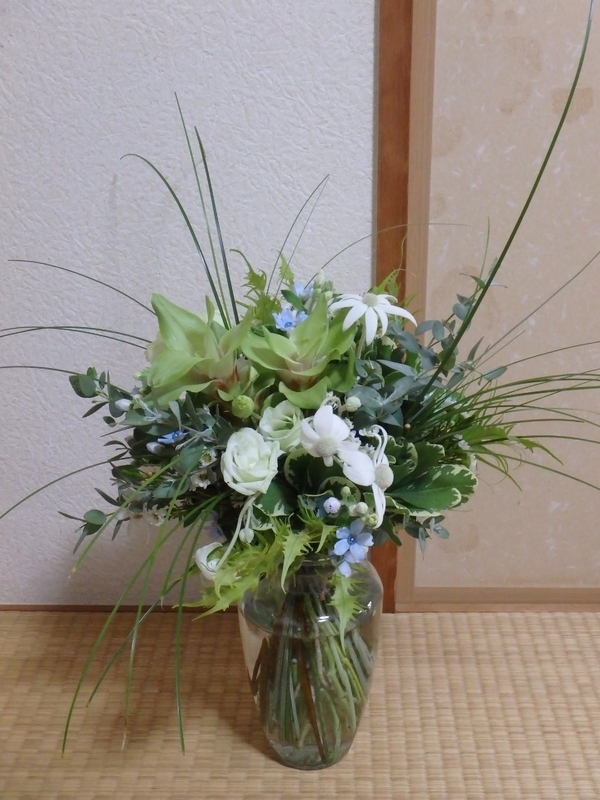 先月、フラワーアレンジメントのレッスンの際、先生とその花瓶の話をしていて、なんとなく流れで今月はその花瓶を使うことになりました。