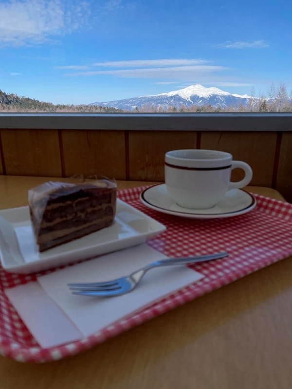 乗鞍岳を眺めながらの特等席でお茶タイム
