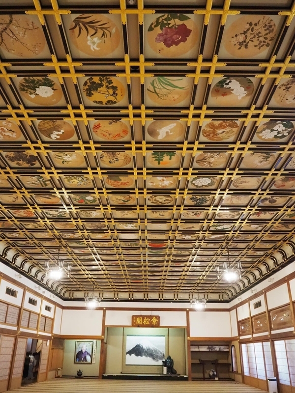 吉祥閣の1階でまず御朱印を頂き、隣の傘松閣の2階へあがると、この「絵天井の間」があります。