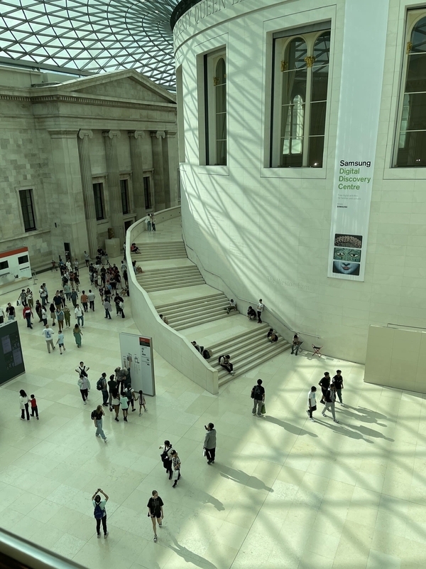 展示室からは追い出されましたがお土産ショップで少し買い物もしました。大英博物館のロビー。