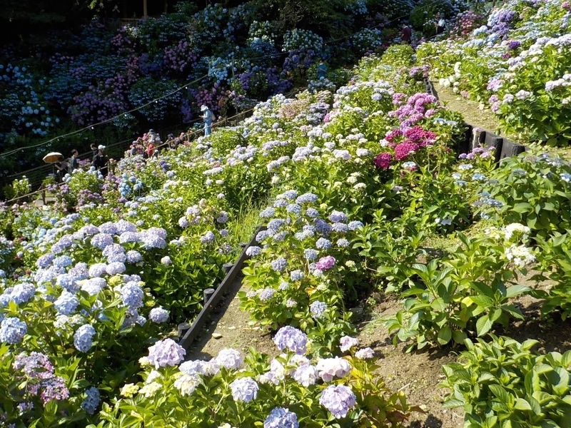 自然の地形(斜面)を生かしたこのアジサイの壁は、なかなか見ごたえがありました。
