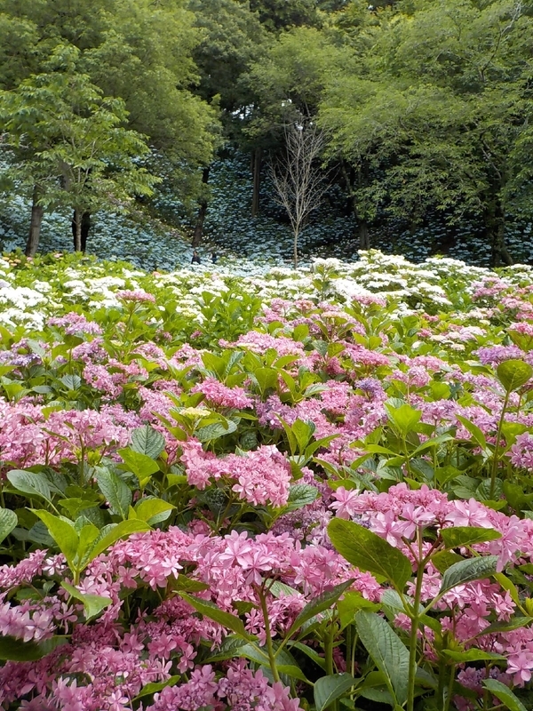 園内は、アジサイのエリアもあって、こんな斜面にアジサイが流れるように咲いていました。