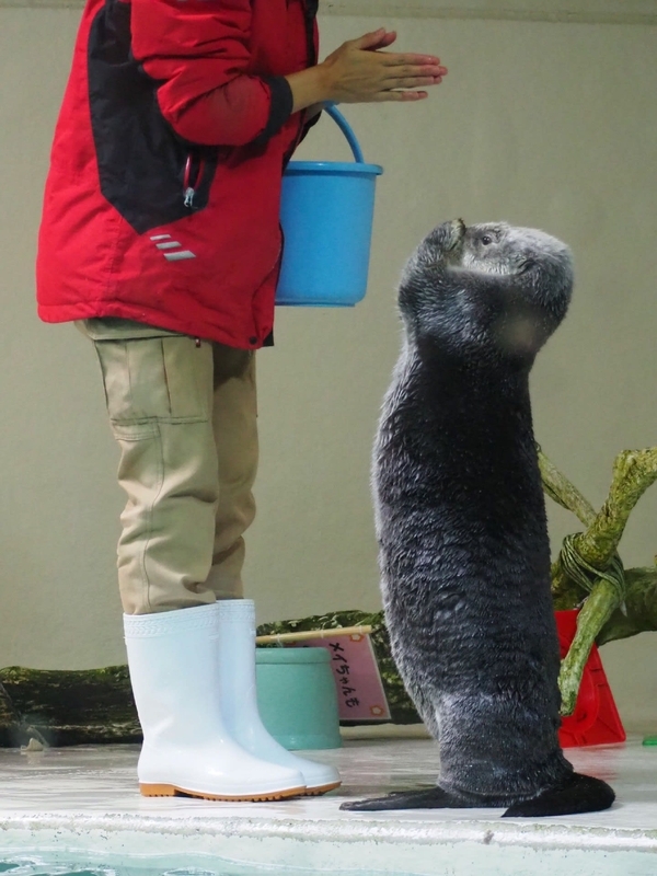 今は、土日や三連休などは、ラッコ水槽のまえにずっと立って陣取ってみることはできず、水槽の前は「歩きながら見る」スペースになっていて、少し離れたところでないとずっと立ってみることはできないみたいです。
